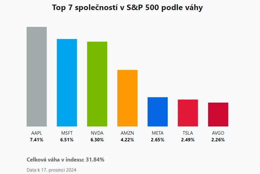 V době, kdy technologie prostupují každým aspektem našeho života, není překvapením, že právě technologické společnosti dominují americkému akciovému trhu. Index S&P 500, který je považován za nejpřesnější barometr americké ekonomiky, je toho jasným důkazem. V jeho čele stojí sedm společností, které společně tvoří více než 30 % celkové hodnoty indexu.