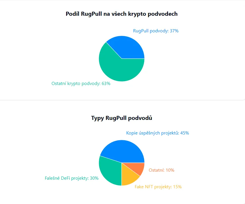Podle analýzy společnosti Chainalysis tvořily RugPully více než třetinu všech kryptoměnových podvodů! Oproti roku 2020, kdy to bylo pouhé 1 %, jde o obrovský nárůst. Ukazuje to, jak rychle se podvodníci učí zneužívat nadšení a důvěřivost investorů.