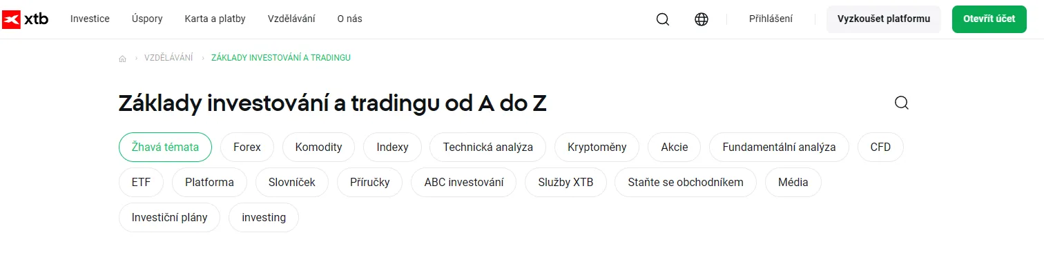 Ať už jste na finančních trzích nováčkem, nebo se již nějakou dobu pohybujete, sekce Vzdělávání na webu je zlatým dolem. XTB si zjevně uvědomuje, že vzdělaný klient je lepší klient, a proto poskytuje obrovské množství materiálů zdarma.