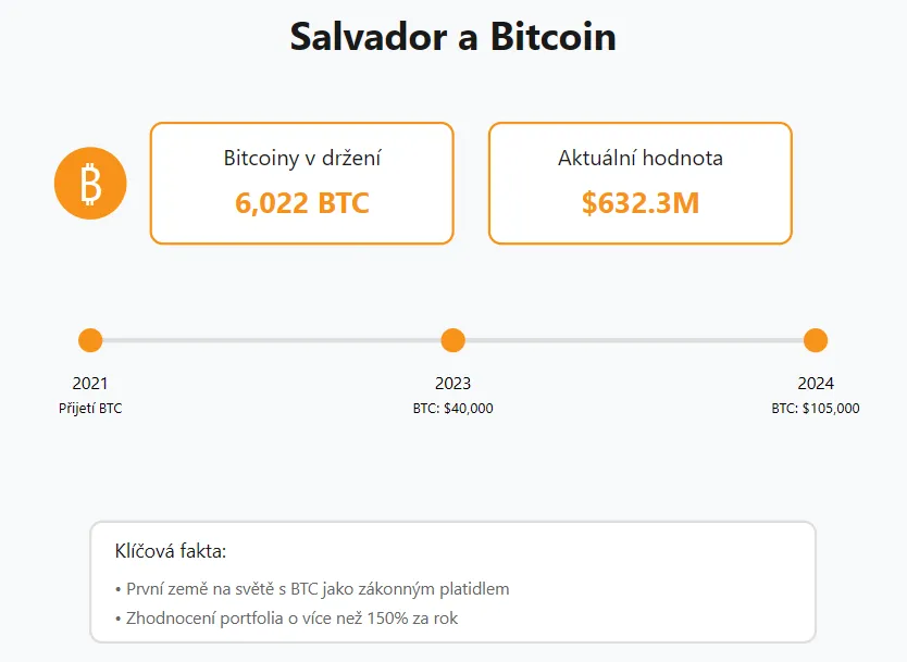 Středoamerická země v současnosti vlastní přes 6 000 bitcoinů, jejichž hodnota v přepočtu přesahuje 15 miliard korun. Pohled na vývoj ceny této investice je fascinující – ještě začátkem minulého roku, kdy se bitcoin obchodoval kolem 950 tisíc korun, by stejné množství kryptoměny představovalo méně než 6 miliard korun.