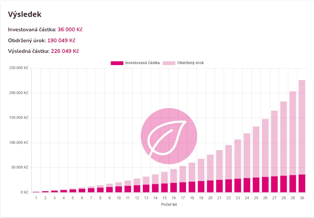 Příklad na 30 let s pouhou 100 korunou měsíčně