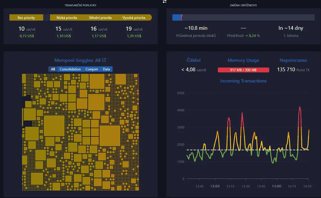 Síť Bitcoinu může být v určitých chvílích přetížená podobně jako dálnice v dopravní špičce. Pokud provádíte transakci v době, kdy je síť nejvíce vytížená, zaplatíte vyšší poplatek. Tento problém můžete obejít tak, že s odesláním vaší transakce počkáte. Mnoho obchodníků se řídí touto strategií a často se jim to vyplatí.