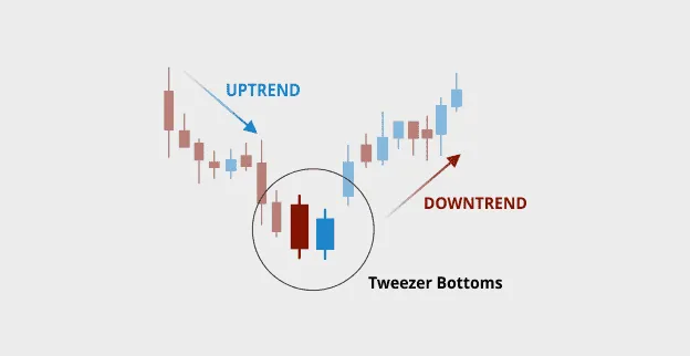 Tweezer Bottom je formace, která se objevuje na dně trendu. Opět se skládá ze dvou po sobě jdoucích svíček, tentokrát v opačném pořadí. První svíčka je medvědí a druhá je býčí. Obě dna svíček jsou téměř na stejné cenové úrovni, což může naznačovat, že trh dosáhl určité podpory a může docházet k obratu trendu směrem vzhůru.