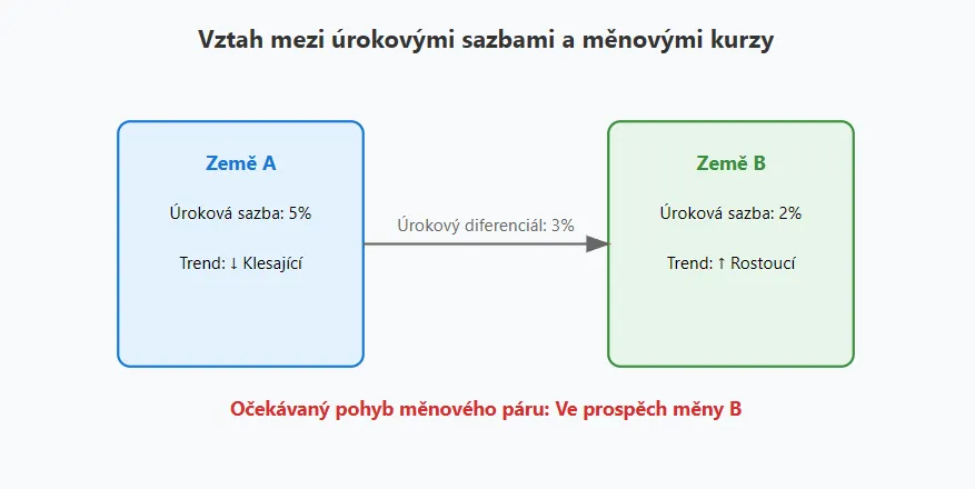 Zvyšování rozpětí úrokových sazeb mezi zeměmi bylo odjakživa v hledáčku mezinárodních traderů. Mnoho začínajících obchodníků však přehlíží klíčový fakt – není to absolutní výše úrokové sazby, která určuje atraktivitu měny. Rozhodující je úrokový diferenciál mezi dvěma zeměmi a především směr, kterým se tyto sazby ubírají.
